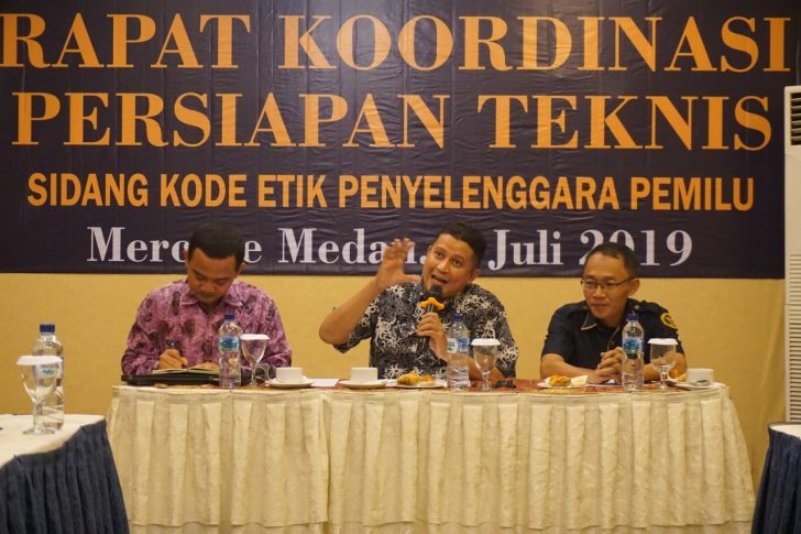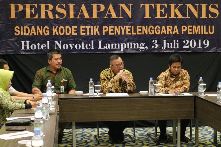 Jakarta, DKPP- Dewan Kehormatan Penyelenggara Pemilu (DKPP) RI menyelenggarakan sidang pemeriksaan dugaan pelanggaran kode etik penyelenggara Pemilu (DKPP) nomor perkara 120-PKE-DKPP/VI/2019 di Ruang Sidang DKPP, lantai 5 Gedung Bawaslu RI,…