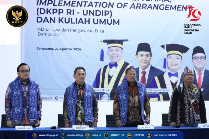 Semarang, DKPP – Dewan Kehormatan Penyelenggara Pemilu (DKPP) menggelar sidang pemeriksaan dugaan pelanggaran Kode Etik Penyelenggara Pemilu (KEPP) untuk perkara Nomor 134-PKE-DKPP/VII/2024 di Kantor KPU Provinsi Banten, Kota Semarang, Jumat…