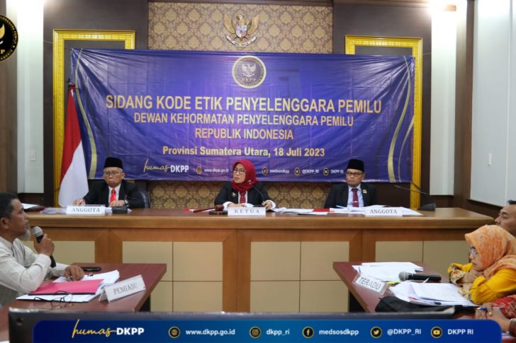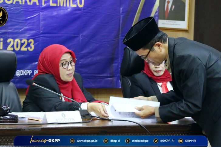 Bandung, DKPP − Dewan Kehormatan Penyelenggara Pemilu (DKPP) menggelar sidang pemeriksaan dugaan pelanggaran Kode Etik Penyelenggara Pemilu (KEPP) perkara Nomor 88-PKE-DKPP/V/2023 di Kantor Bawaslu Provinsi Jawa Barat, Kota Bandung, Jumat…
