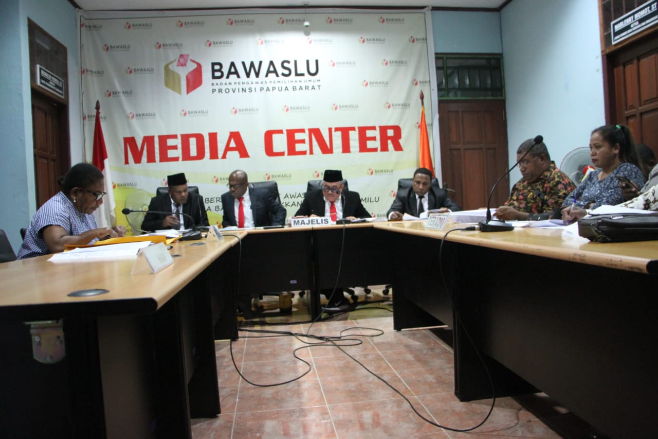 Monokwari, DKPP – Dewan Kehormatan Penyelenggara Pemilu (DKPP) menggelar sidang pemeriksaan pelanggaran kode penyelenggara Pemilu perkara nomor 184-PKE-DKPP/VII/2019 di Kantor Bawaslu Provinsi Papua Barat, Kota Manokwari, Kamis (8/8/2019) petang.