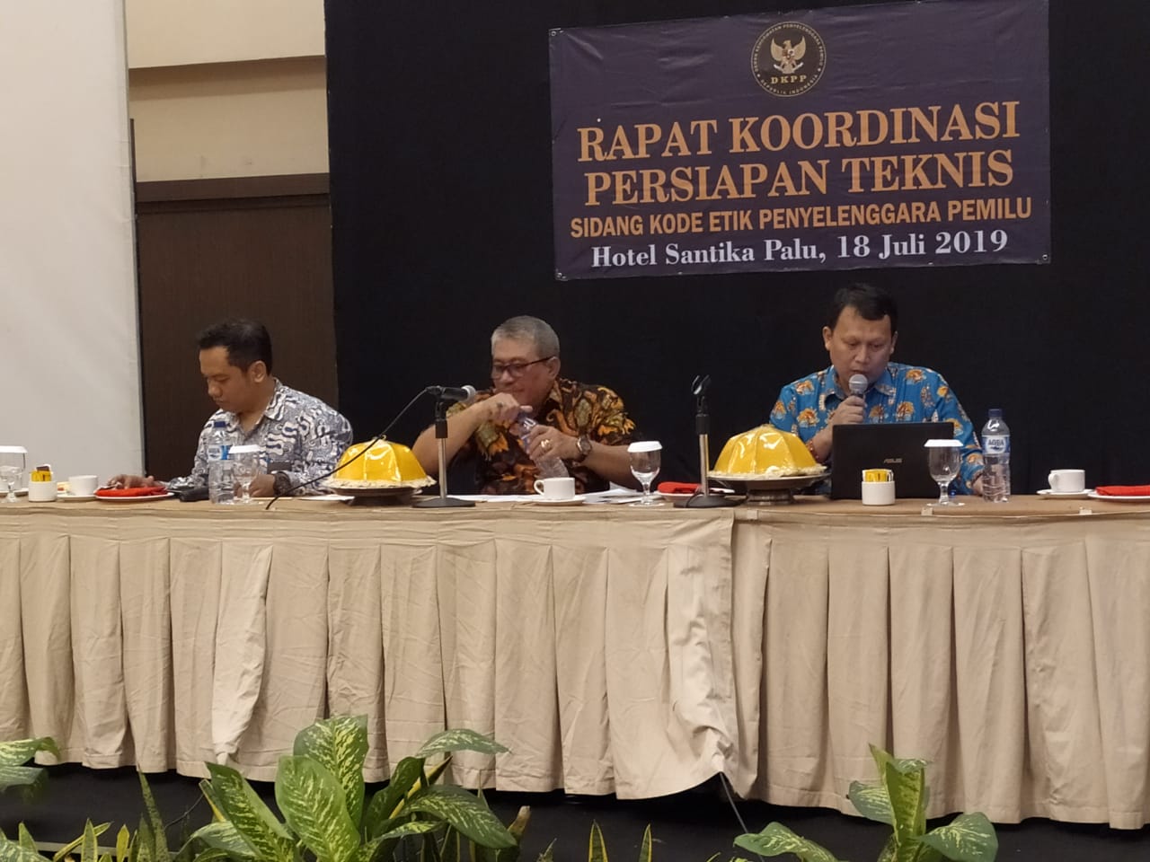Palu, DKPP – Dewan Kehormatan Penyelenggara Pemilu (DKPP) menggelar Rapat Koordinasi Teknis (Rakornis) persiapan sidang kode etik penyelenggara Pemilu di Kota Palu, Kamis (18/7/2019) Malam.
