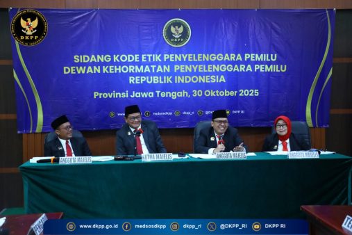 Semarang, DKPP – Dewan Kehormatan Penyelenggara Pemilu (DKPP) menggelar sidang pemeriksaan dugaan pelanggaran Kode Etik Penyelenggara Pemilu (KEPP) perkara nomor: 196-PKE-DKPP/IX/2025 di Kantor Bawaslu Provinsi Jawa Tengah, Kota Semarang, pada Kamis (30/10/2025).