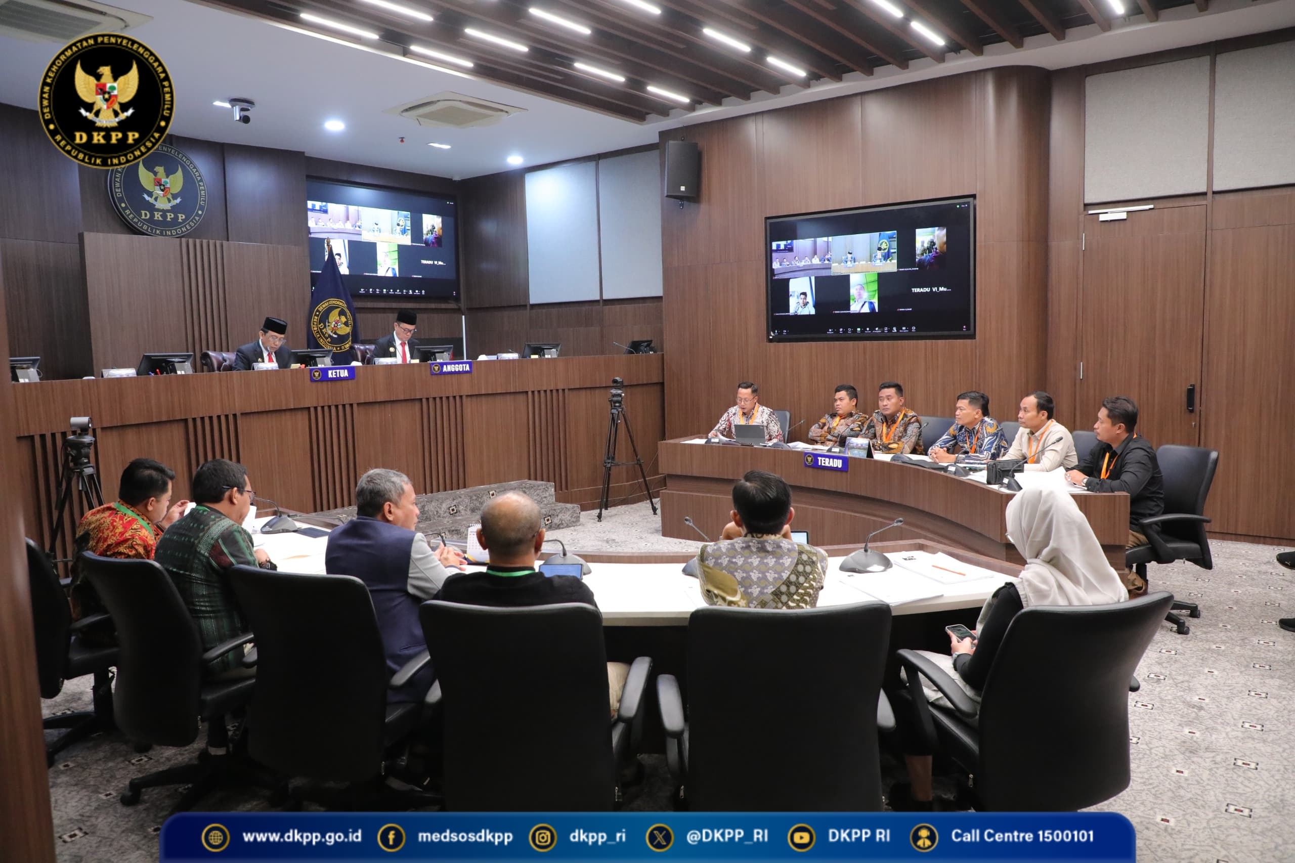 Jakarta, DKPP – Dewan Kehormatan Penyelenggara Pemilu (DKPP) memeriksa 10 penyelenggara Pemilu dalam sidang pemeriksaan dugaan pelanggaran Kode Etik Penyelenggara Pemilu (KEPP) untuk perkara 1-PKE-DKPP/I/2025 yang dilakukan secara hibrida, Rabu (22/1/2025).