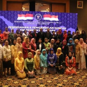 Dewan Kehormatan Penyelenggara Pemilu melantik sebanyak 136 Anggota Tim Pemeriksa Daerah (TPD) tahun 2018 dari seluruh Indonesia di Hotel Aryaduta, Jalan Tugu Tani, Jakarta Pusat, Kamis (1/3/2018). Category: ImagesBy DKPP01-03-2018Album navigationPreviousPrevious album:Sidang Putusan DKPP, Kamis (08/02)NextNext album:Sidang Kode Etik KPU & Bawaslu RI, Rabu 14 Maret 2018