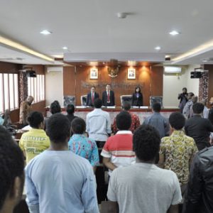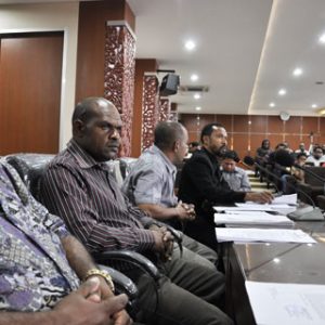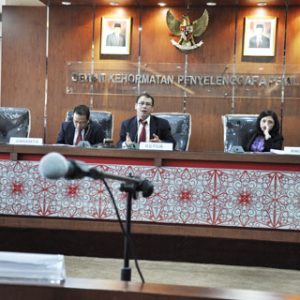 Sidang KPU Jayawijaya Sidang DKPP Teradu KPU Kab Jayawijaya Jakarta, DKPP – Dewan Kehormatan Penyelenggara Pemilu (DKPP) Rabu 29/5 menggelar sidang dugaan pelanggaran kode etik penyelenggara Pemilu yang diduga dilakukan oleh Ketua dan anggota KPU Kab Jaya Wijaya, Prov Papua. Sidang digelar pukul 14.00 WIB di Ruang Sidang DKPP Gedung Bawaslu lantai 5, Jl. MH. Thamrin No 14 Jakarta Pusat. Bertindak selaku Ketua Panel Majelis Anggota DKPP Saut H Sirait didampingi Anggota Nur Hidayat Sardini dan Ida Budhiati. Agenda sidang perdana ini yakni mendengarkan laporan/aduan Pengadu Vincentius Lokobal dan mendengarkan jawaban dari para Teradu Ketua dan Anggota KPU Kab Jayawijaya atas nama Pdt Alexander, Joy M Bukorsom, Yanius Yarre, dan Pdt Esmon Walilo. Dalam keterangannya, pihak Teradu menyangka para Teradu telah bertindak tidak profesional dalam menentukan Daftar Pemilih Tetap (DPT). Hal ini disebabkan adanya ketidaksinkronan DPT di setiap event Pemilu.