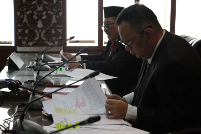 Ternate, DKPP — Dewan Kehormatan Penyelenggara Pemilu menggelar sidang pemeriksaan pelanggaran kode etik atas perkara nomor 106-PKE-DKPP/VI/2019 dengan tujuh penyelenggara Pemilu asal Provinsi Maluku Utara sebagai Teradu. Tujuh Teradu tersebut berasal dari Bawaslu Kabupaten Halmahera Tengah, KPU Kabupaten Halmahera Tengah dan KPU Provinsi Maluku Utara. Dari KPU Kabupaten Halmahera Tengah yaitu Ketua Abubakar Ibrahim serta