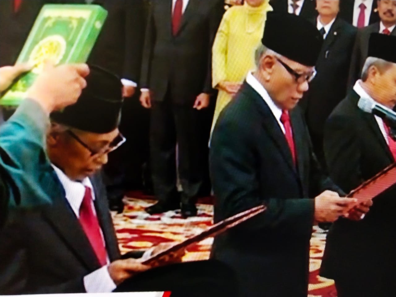 Jakarta, DKPP – Presiden Joko Widodo melantik Anggota Dewan Pengawas Komisi Pemberantasan Korupsi (KPK) Jumat, 20/12/19 di Istana Kepresidenan, Jakarta. Pelantikan ini berbarengan dengan pelantikan pimpinan KPK periode 2019-2023 yang telah lolos uji kepatutan dan kelayakan di DPR.