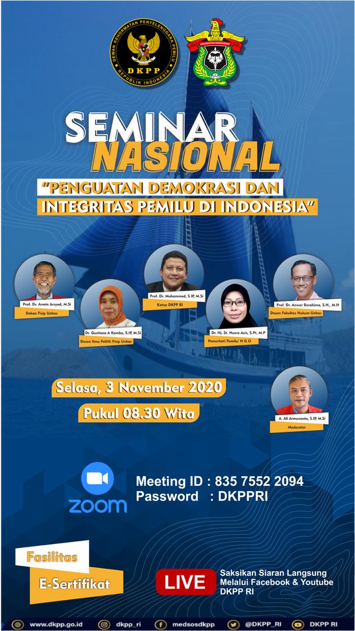 Sebagai informasi, narasumber lain dalam seminar nasional Prof. Armin Arsyad (Dekan Fisip Unhas), Prof. Anwar Borahima (Dosen Fakultas Hukum Unhas), Dr. Gustiana A Kambo (Dosen Ilmu Politik Fisip Unhas), dan Dr. Hj. St. Nusra Azis (Pemerhati Pemilu). [Humas DKPP]