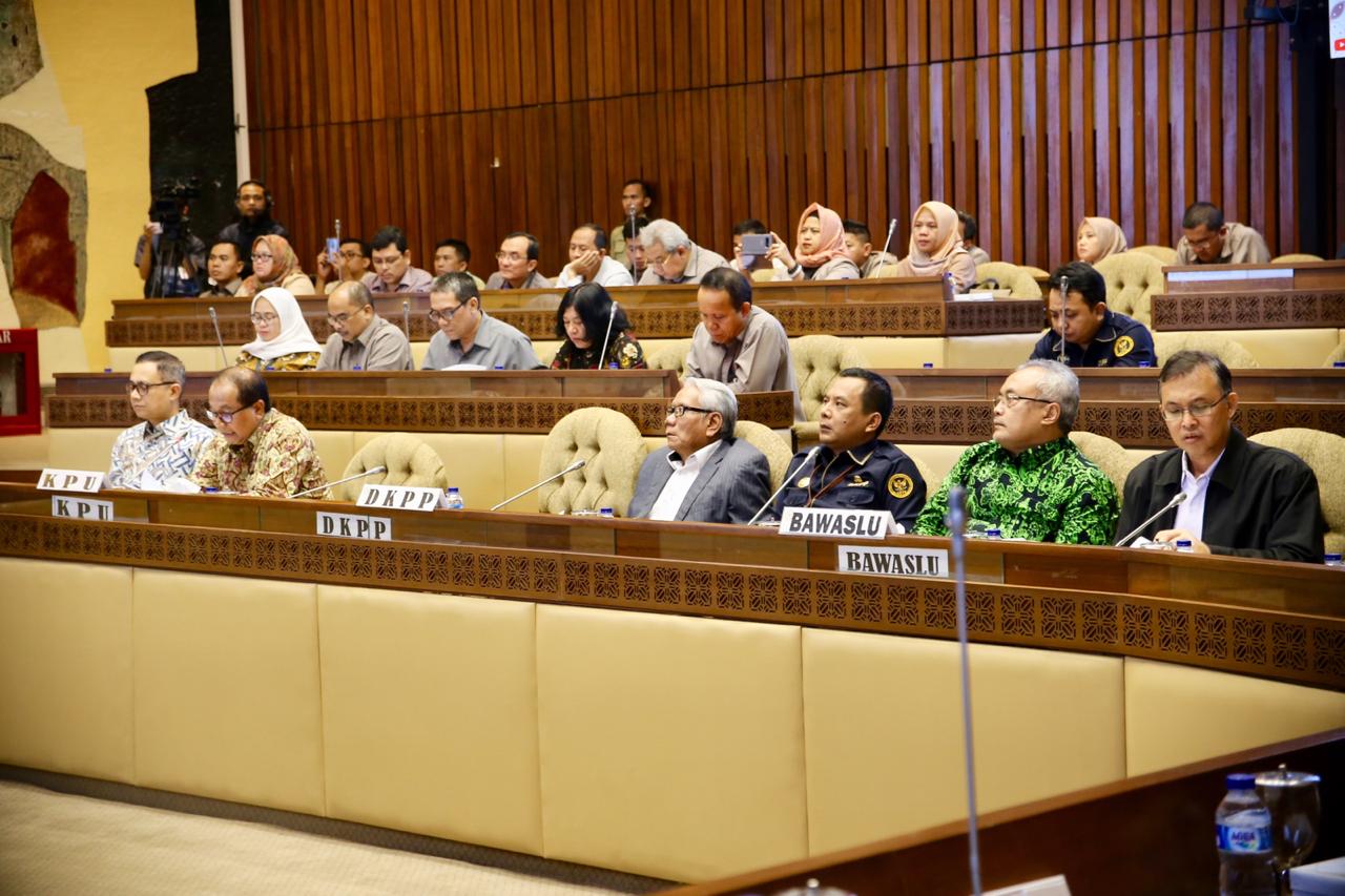 Jakarta, DKPP – Siang ini Dewan Kehormatan Penyelenggara Pemilu (DKPP), Bawaslu, dan KPU mengikuti rapat dengar pendapat (RDP) dengan Komisi II DPR di Kompleks DPR MPR, Senayan, Jalan Gatot Subroto, Jakarta Selatan, Rabu (19/6/2019).